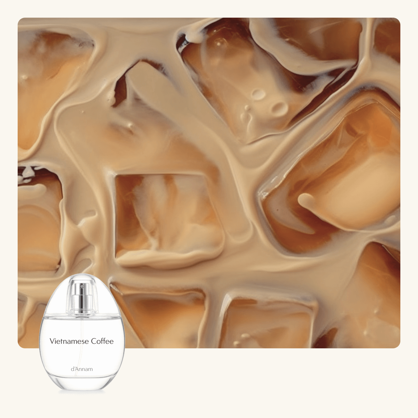 Vietnamese Coffee EDP honors Vietnam's iconic drink, crafted from dark-roasted Robusta beans, which exude a bold, caramel-chocolate richness and a pronounced bitterness that perfectly complements condensed milk. Topped with ice, it is the perfect drink to start the day.